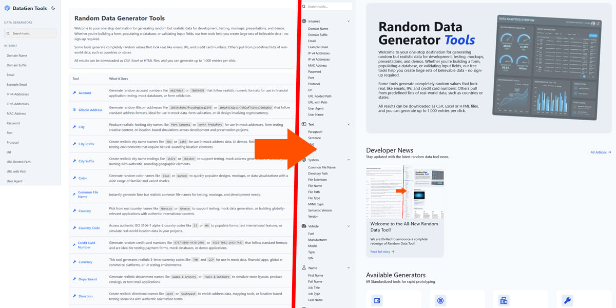 We are thrilled to announce a complete redesign of Random Data Tool! Our goal has always been to provide developers, testers, and designers with the fastest, most reliable dummy data generation. With this massive update, we’ve rebuilt the platform from the ground up to be more modern, intuitive, and an improvement in every possible way.